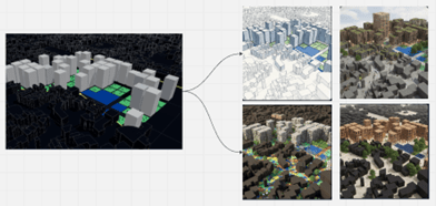 Public participation in urban design, supported by generative tech and immersive visuals.